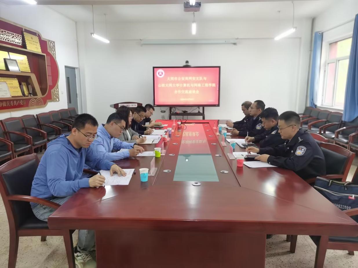 4月26日下午,我院与大同市公安局网安支队在本真楼B205会议室举行了交流座谈会。大同市公安局网安支队支队长李经、大同市公安局网安支队大队长鲍善良、大同市网安支队副大队长刘韬、大同市公安局网安支队三级技术主管李文耀、我院院长宋晓霞及学院网络工程专业骨干教师参加交流,学院副院长杨泽民主持会议。