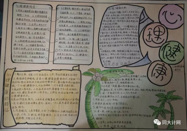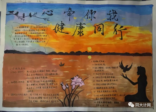 健康的心理素质是大学生全面发展的基本要求,也是将来走向社会,在工作岗位上发挥智力水平、积极从事社会活动以及不断向更高层次发展的重要条件。为进一步做好疫情防控下大学生心理健康教育工作,提倡大学生关爱自我、了解自我、接纳自我,关注自身心理健康和心灵成长,提高自身心理素质,我院学生精心设计版面,挑选内容,图文并茂的手抄报邀你共赴美好!