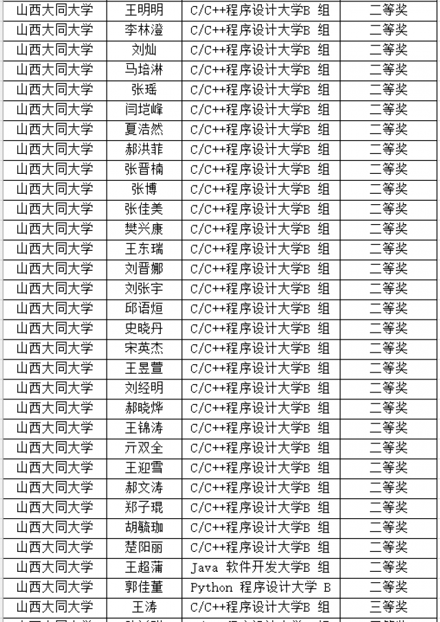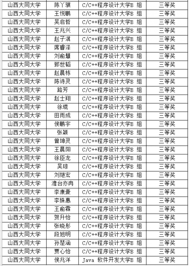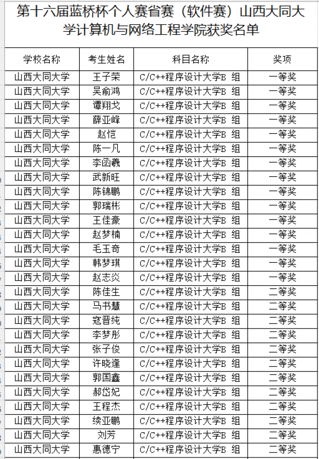 第十六届蓝桥杯个人赛省赛(软件赛)山西大同大 学永利yl23411集团获奖名单