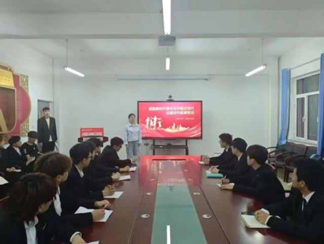 活动伊始,学生团委思政工作部部长耿沁沁通过精心准备的PPT展示、鲜活生动的案例分析以及深入浅出的理论讲解,带领同学们全面、系统地学习了《激励新时代青年在中国式现代化建设中挺膺担当》这篇重要讲话。从中国式现代化的丰富内涵与重大意义,到新时代青年在这一伟大征程中的角色定位与使命担当,每一个要点都讲解得细致入微、鞭辟入里。会议强调习近平总书记对新时代青年提出的殷切期望,即要坚定理想信念,厚植家国情怀,练就过硬本领,勇于创新创造,矢志艰苦奋斗。鼓励青年学生将个人的成长与国家的发展紧密结合起来,以“功成不必在我,功成必定有我”的担当精神,在中国式现代化建设的火热实践中书写绚丽多彩的青春篇章。