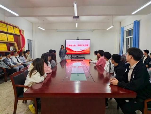 学生团委综合办公部部长王昕通过图文资料、视频解读等形式,带领大家深入学习了《求是》杂志发表的习近平总书记2023年6月26日在同团中央新一届领导班子集体谈话时的重要讲话 ——《激励新时代青年在中国式现代化建设中挺膺担当》以及给谢依特小学戍边支教西部计划志愿者服务队队员的回信内容,详细解读了回信中对青年提出的期望与要求,深刻阐述了新时代青年所肩负的历史使命与责任担当,鼓励同学们以支教志愿者为榜样,到祖国和人民最需要的地方发光发热,为中国式现代化建设贡献青春力量。