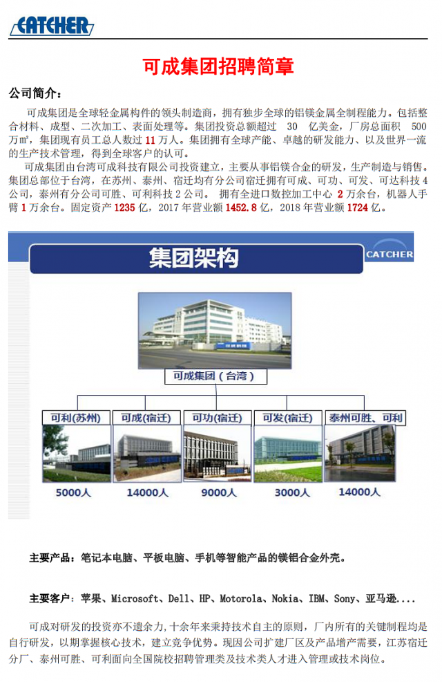 可成集团招聘简章
