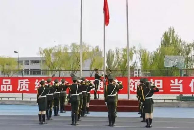 六点四十分,升旗仪式正式开始。国旗护卫队迎着朝阳,迈着坚定的步伐护送国旗入场,矫健的身姿在洒落的阳光中熠熠生辉。随着国歌奏响,五星红旗冉冉升起,全体师生行注目礼,眼中充盈着自豪和对祖国崇高的敬意。