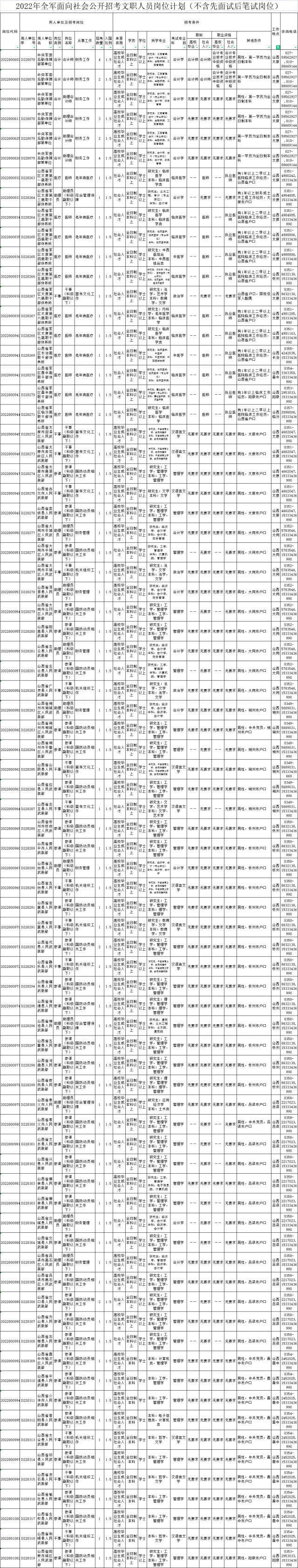 2022年主要面向社会公开招考科级正职以下管理岗位和中级以下专业技术岗位文职人员。