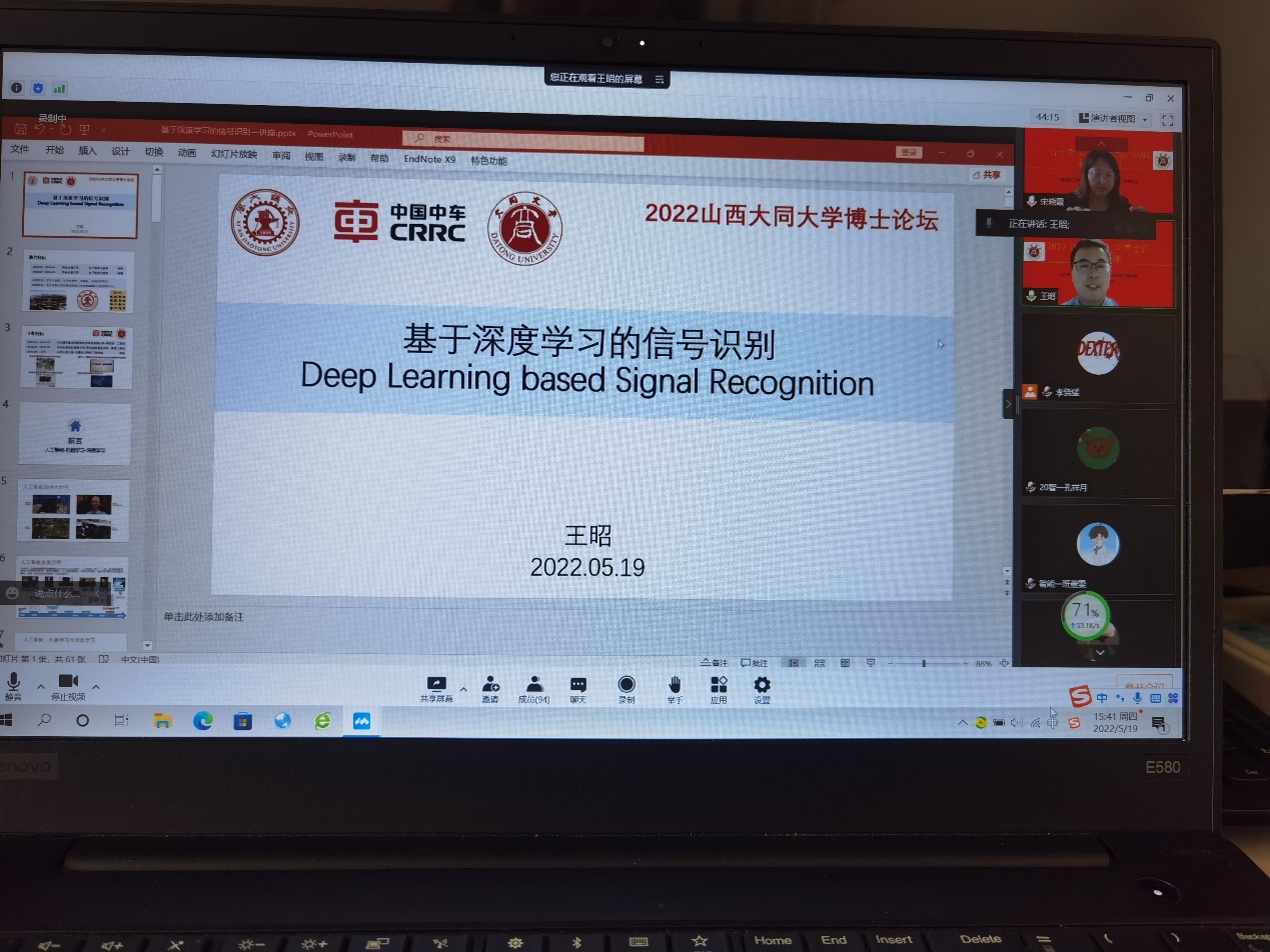 5月19日下午,我院王昭博士作了题为“基于深度学习的信号识别”的学术讲座。该讲座是我校本学期“博士论坛”系列讲座之一。讲座由我院院长宋晓霞教授主持,来自各学院90余名师生参加了腾讯线上讲座。