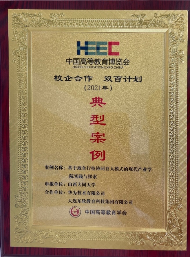 会议为包括我校与清华大学、华北理工大学、南开大学等在内的260个2021年度中国高等教育博览会“校企合作双百计划”典型案例颁发奖牌。校党委副书记、校长姚丽英,校党委常委、副校长翟大彤、教务部、我院负责人等出席了颁奖典礼。