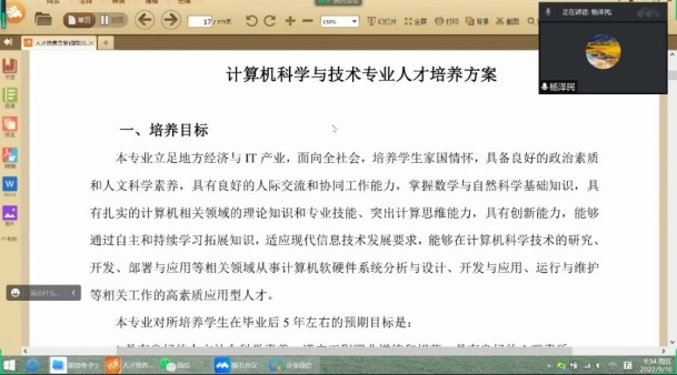 9月16日,我院组织了2022级新生线上学习了各专业的人才培养方案,其中,学院副院长杨泽民教授指导学习计算机科学与技术专业的人才培养方案、高云老师指导学习计算机科学与技术(云计算方向)的人才培养方案、张旭龙老师指导学习网络工程专业的人才培养方案、刘宏英老师指导学习智能科学与技术专业的人才培养方案。