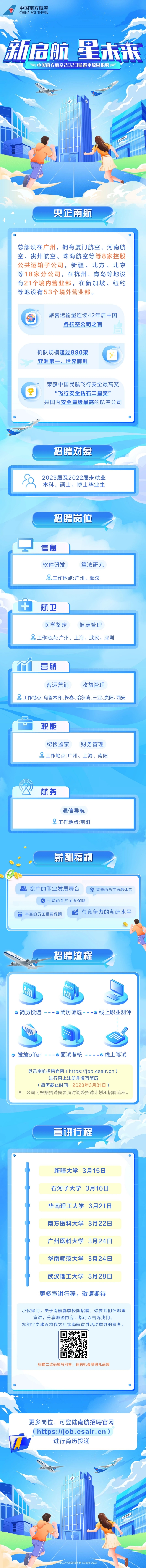 央企校招 | 七险二金全面保障!中国南方航空2023届春季校园招聘