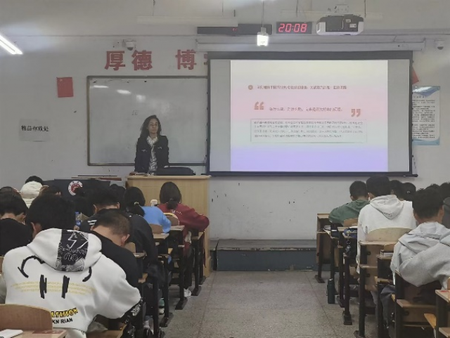 张莉结合团员和青年主题教育“强国复兴”专题为同学们讲授团课,以中国新时代十年的伟大变革和伟大成就作为切入点,从“党的二十大关于全面建成社会主义现代化强国、以中国式现代化全面推进中华民族伟大复兴的战略部署和习近平总书记的相关重要论述”、“新时代新征程党和国家事业发展的目标任务”以及“深刻理解中国式现代化是强国建设、民族复兴的唯一正确道路”三个方面为同学们详细阐述在习近平新时代中国特色社会主义思想理论指引下,用中国式现代化推进国家建设和民族复兴已经进入到不可逆转的历史进程。同时,鼓励23届毕业生学好专业知识,练就过硬本领,把个人的理想追求融入党和国家事业之中,到国家需要的地方建功立业。课上,她为同学们介绍了“特岗计划”、“三支一扶”、“西部计划”等一系列基层就业项目,引导鼓励更多2023届毕业生赴基层就业,将青春融入建设祖国的伟大征程。